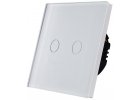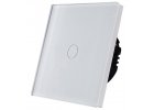 Exkluzívny dotykový vypínač s technológiou SILICON CONTROL - radenie č.1 s panelom z tvrdeného bezpečnostného skla a modrým indikačným LED podsvietením.